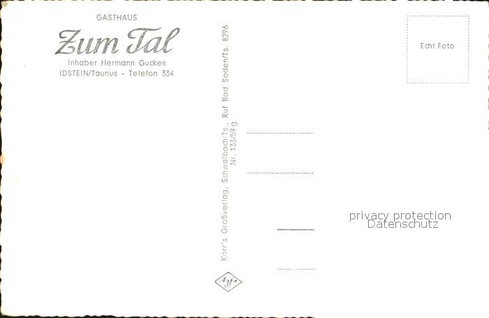 72507266 Idstein Gasthaus zum Tal postalisch nicht gelaufen Erhaltung siehe scans KatCode: 11110006439008