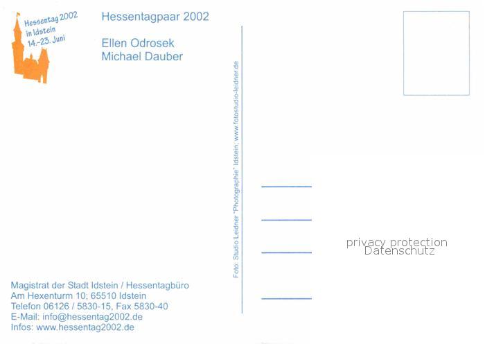 72693378 Idstein Hessentagpaar postalisch nicht gelaufen Erhaltung siehe scans [KathaD79] KatCode: 11110006439008