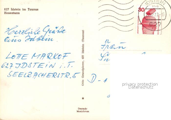 73125498 alte Postkarte Idstein Hexenturm postalisch gelaufen Erhaltung siehe scans [FriedD77] KatCode: 11110006439008