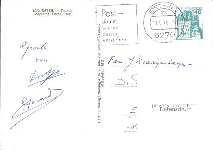 72446745 alte Postkarte Idstein Toepferhaus postalisch gelaufen Erhaltung siehe scans KatCode: 11110006439008