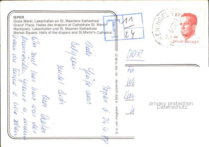 72107225 carte postale Ieper Grote Markt Lakenhallen en St Maartens Kathedraal Fliegeraufnahme postalisch gelaufen Erhaltung siehe scans KatCode: 11070033000282