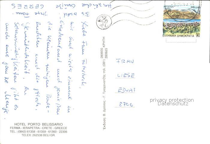 old postcard Ierapetra Kreta Hotel Porto Belissario Panorama Pool postalisch gelaufen Erhaltung siehe scans