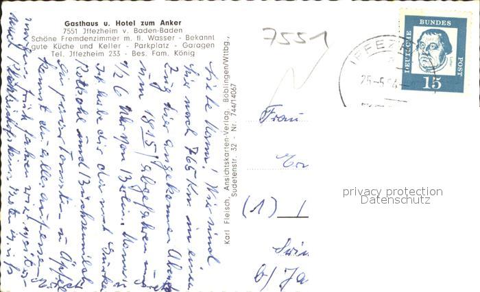 31730882 alte Postkarte Iffezheim Gasthaus Hotel zum Anker postalisch gelaufen Erhaltung siehe scans KatCode: 11110008216023