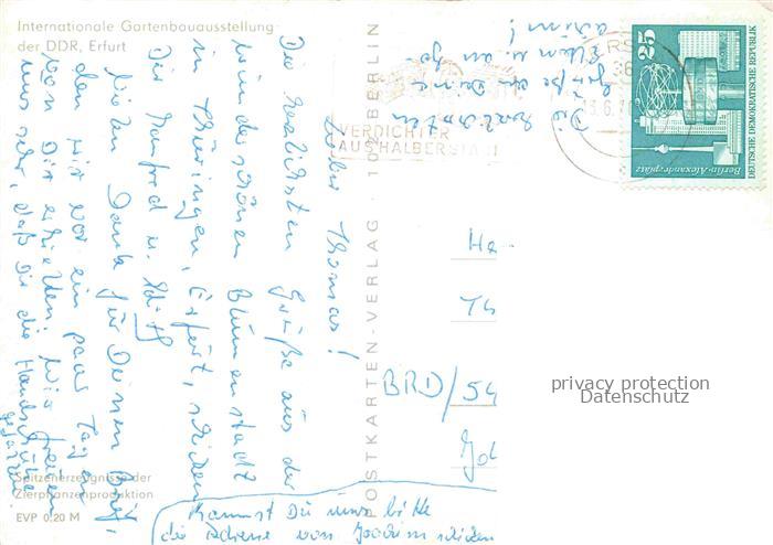 74054639 alte Postkarte IGA Gartenbauaustellung International DDR Erfurt postalisch gelaufen Erhaltung siehe scans [SanaeD93] KatCode: 22100000000100