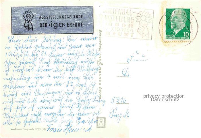 74055025 alte Postkarte IGA Gartenbauaustellung International Erfurt Ausstellungsgelaende postalisch gelaufen Erhaltung siehe scans [IrynaD87] KatCode: 22100000000100