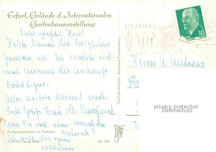 74055071 alte Postkarte IGA Gartenbauaustellung International Erfurt DDR Rosen postalisch gelaufen Erhaltung siehe scans [SanaeD93] KatCode: 22100000000100