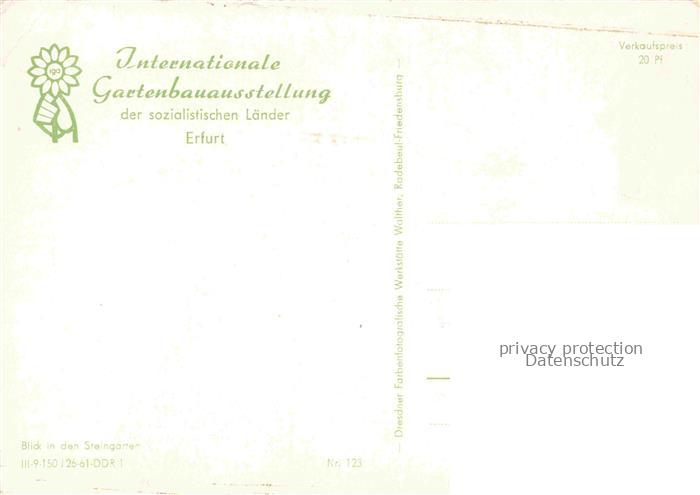 74056913 IGA Gartenbauaustellung International Erfurt DDR Stelngarten postalisch nicht gelaufen Erhaltung siehe scans [SanaeD93] KatCode: 22100000000100