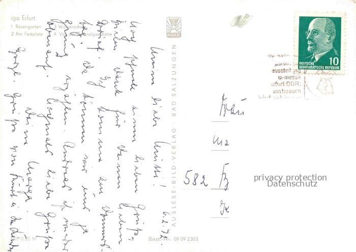 74055076 alte Postkarte IGA Gartenbauaustellung International Erfurt Rosen Festplatz postalisch gelaufen Erhaltung siehe scans [SanaeD93] KatCode: 22100000000100