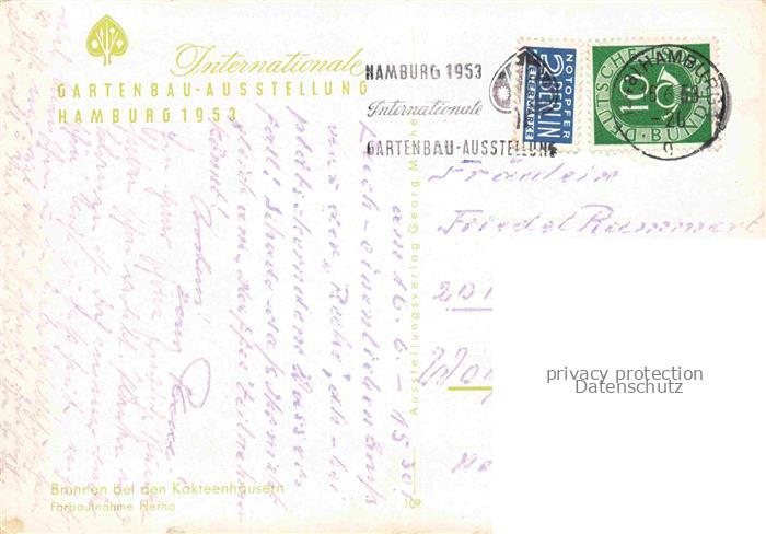 74055520 alte Postkarte IGA Gartenbauaustellung International Hamburg Brunnen Kakteenhaeuser postalisch gelaufen Erhaltung siehe scans [SanaeD93] KatCode: 22100000000100