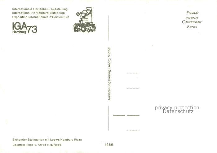 74054673 IGA Gartenbauaustellung International Hamburg Congress Centrum postalisch nicht gelaufen Erhaltung siehe scans [SanaeD93] KatCode: 22100000000100
