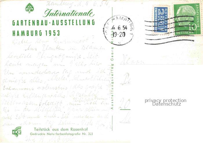 74055523 alte Postkarte IGA Gartenbauaustellung International Hamburg Teilstueck Rosenhof postalisch gelaufen Erhaltung siehe scans [SanaeD93] KatCode: 22100000000100