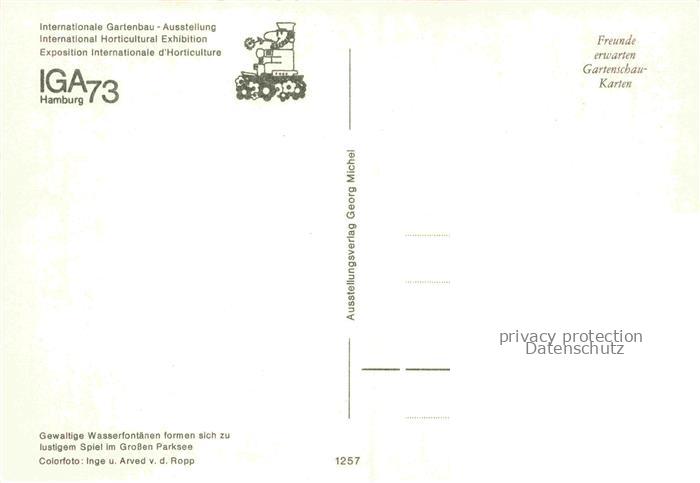 74055066 IGA Gartenbauaustellung International Hamburg Wasserfontaenen Grossen Parksee postalisch nicht gelaufen Erhaltung siehe scans [IrynaD87] KatCode: 22100000000100