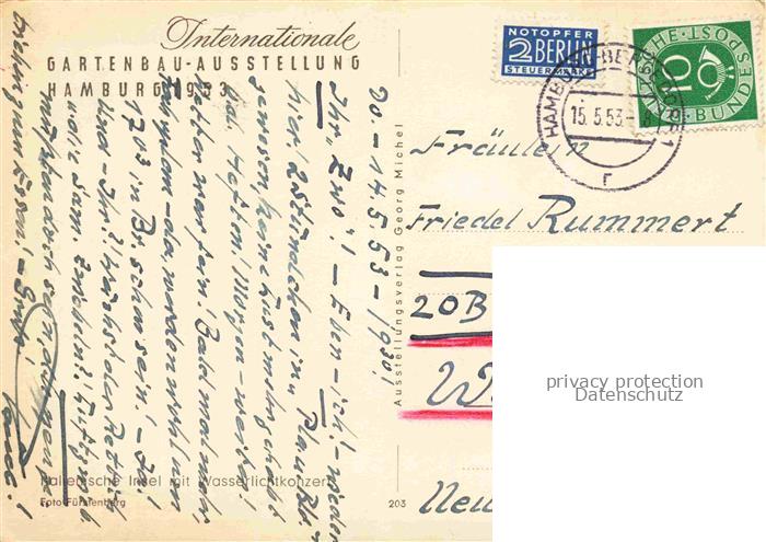 74055518 alte Postkarte IGA Gartenbauaustellung International Hamburg Wasserlichtkonzert postalisch gelaufen Erhaltung siehe scans [SanaeD93] KatCode: 22100000000100