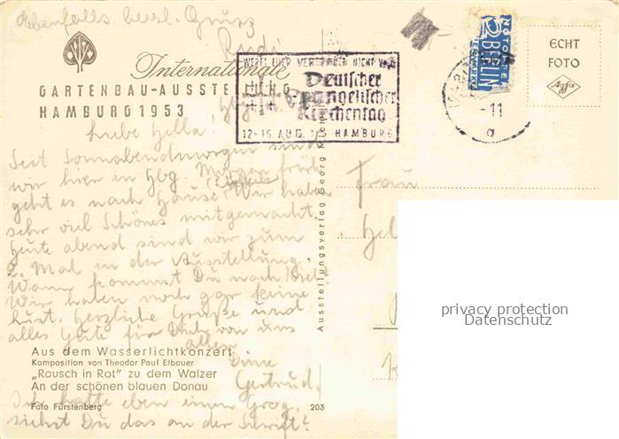 74054493 alte Postkarte IGA Gartenbauaustellung International Hamburg Wasserlichtkonzert postalisch gelaufen Erhaltung siehe scans [IrynaD87] KatCode: 22100000000100