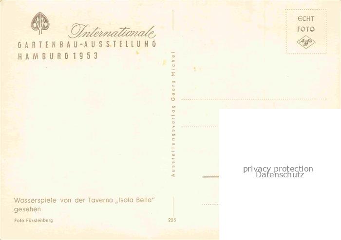 74056220 IGA Gartenbauaustellung International Hamburg Wasserspiele Taverna Isola Bella postalisch nicht gelaufen Erhaltung siehe scans [SanaeD93] KatCode: 22100000000100