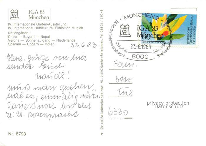 74055099 alte Postkarte IGA Gartenbauaustellung International Muenchen China Nepal Ungarn Rosen Tulpen postalisch gelaufen Erhaltung siehe scans [SanaeD93] KatCode: 22100000000100
