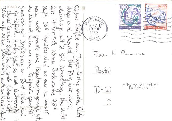 old postcard Igalo Hochhaeuser Hotels Strandpartien postalisch gelaufen