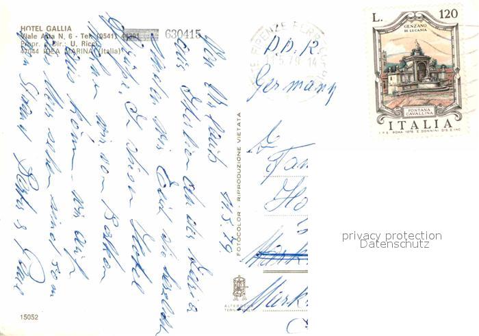alte Postkarte Igea Marina Hotel Gallia postalisch gelaufen Erhaltung siehe scans [KathaD81]