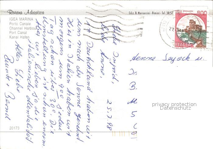 old postcard Igea Marina Kanal Hafen postalisch gelaufen Erhaltung siehe scans