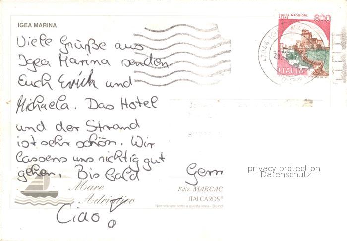 old postcard Igea Marina Riviera Adriatica Strand Nachtaufnahme postalisch gelaufen Erhaltung siehe scans