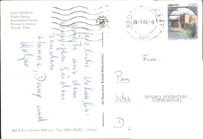 old postcard Igea Marina Viale Pinzon postalisch gelaufen Erhaltung siehe scans