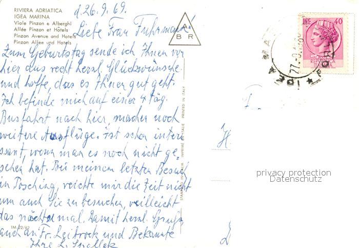 old postcard Igea Marina Viale Pinzon e Alberghi postalisch gelaufen Erhaltung siehe scans [WerneD78]