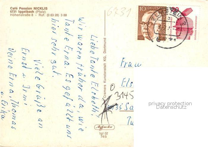 73158015 alte Postkarte Iggelbach Cafe Pension Nicklis Fremdenzimmer Landschaftspanorama postalisch gelaufen Erhaltung siehe scans [FriedD77] KatCode: 11110007332014
