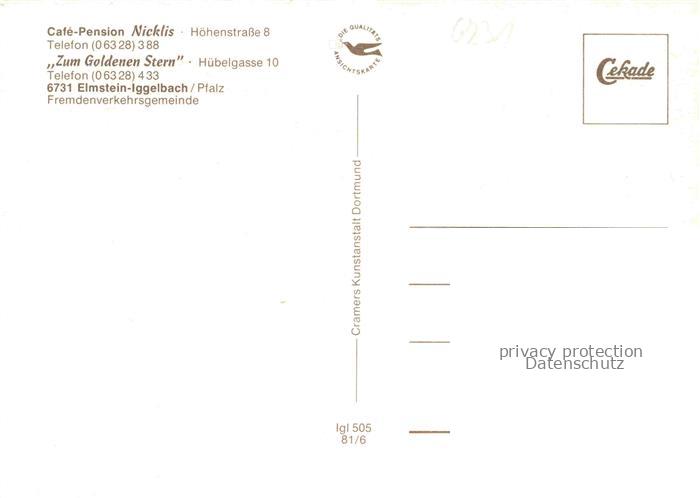 74046728 Iggelbach Elmstein Bad Duerkheim Rheinland-Pfalz Cafe Pension Nicklis Gasthaus Zum goldenen Stern Brandbuche Glockenturm Wanderweg postalisch nicht gelaufen Erhaltung siehe scans [WerneD78] KatCode: 11110007332014