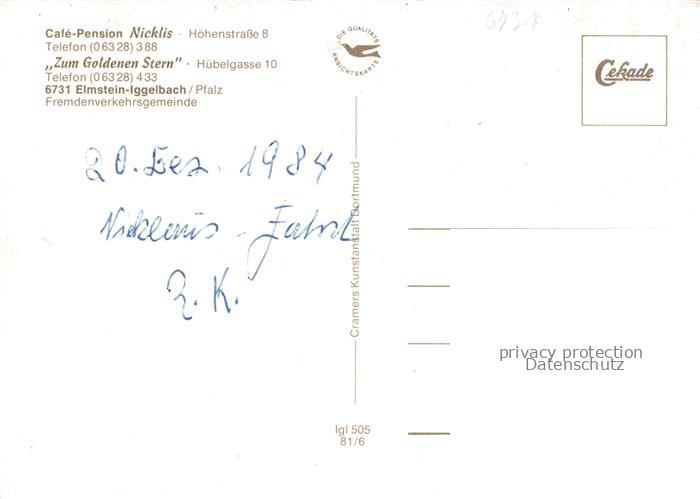 74046792 Iggelbach Elmstein Bad Duerkheim Rheinland-Pfalz Cafe Pension Nicklis Gasthaus Zum goldenen Stern Brandbuche Glockenturm Wanderweg postalisch nicht gelaufen Erhaltung siehe scans [WerneD78] KatCode: 11110007332014