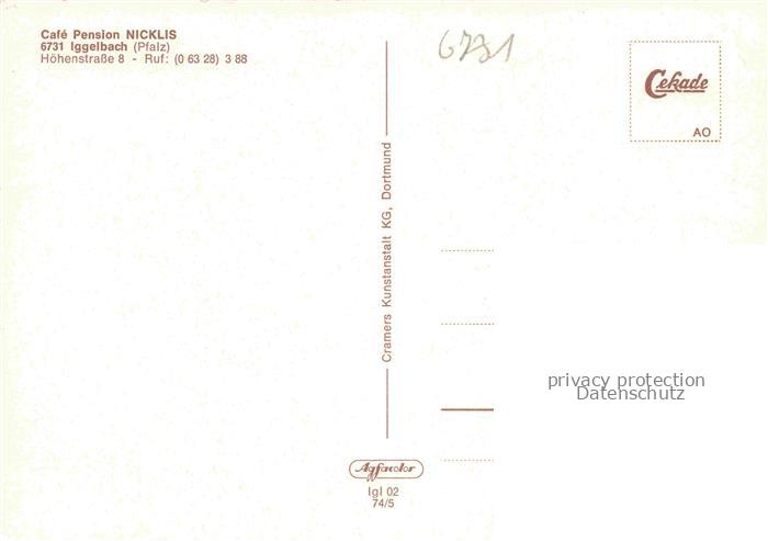 74047408 Iggelbach Elmstein Bad Duerkheim Rheinland-Pfalz Café Pension Nicklis Gastraum Fremdenzimmer Panorama postalisch nicht gelaufen Erhaltung siehe scans [FriedD77] KatCode: 11110007332014
