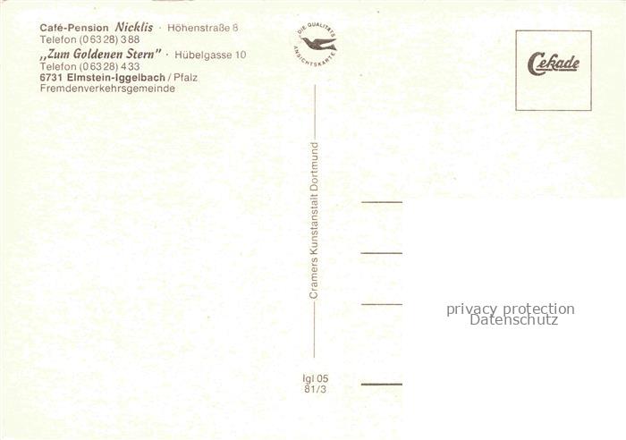74046802 Iggelbach Elmstein Bad Duerkheim Rheinland-Pfalz Cafe Pension Nicklis Zum Goldenen Stern Glockenturm Panorama postalisch nicht gelaufen Erhaltung siehe scans [WerneD78] KatCode: 11110007332014