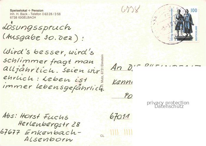 74006912 alte Postkarte Iggelbach Waldgaststaette Haus Muehleck Gastraeume Zimmer postalisch gelaufen Erhaltung siehe scans [WerneD78] KatCode: 11110007332014