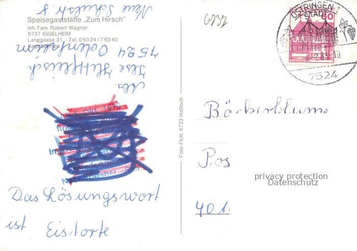 74006895 alte Postkarte Iggelheim Pfalz Speisegaststaette Zum Hirsch Gastraum Kegelbahn postalisch gelaufen Erhaltung siehe scans [WerneD78] KatCode: 11110007338005