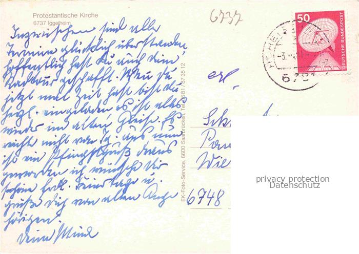74042361 alte Postkarte Iggelheim Protestantische Kirche postalisch gelaufen Erhaltung siehe scans [WerneD78] KatCode: 11110007338005