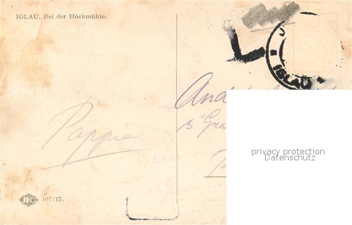 old postcard Iglau Jihlava Partie am Fluss an der Hoeckmuehle Schwaene postalisch gelaufen Erhaltung siehe scans [FriedD77]