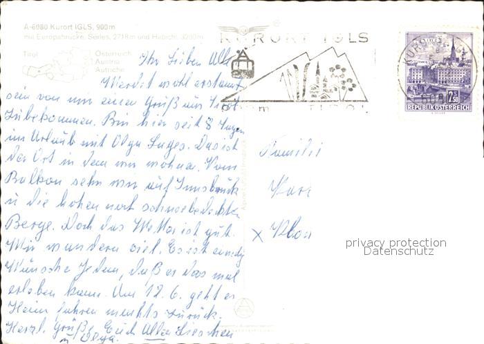 72492518 alte Postkarte Igls Tirol postalisch gelaufen Erhaltung siehe scans KatCode: 11390332070101