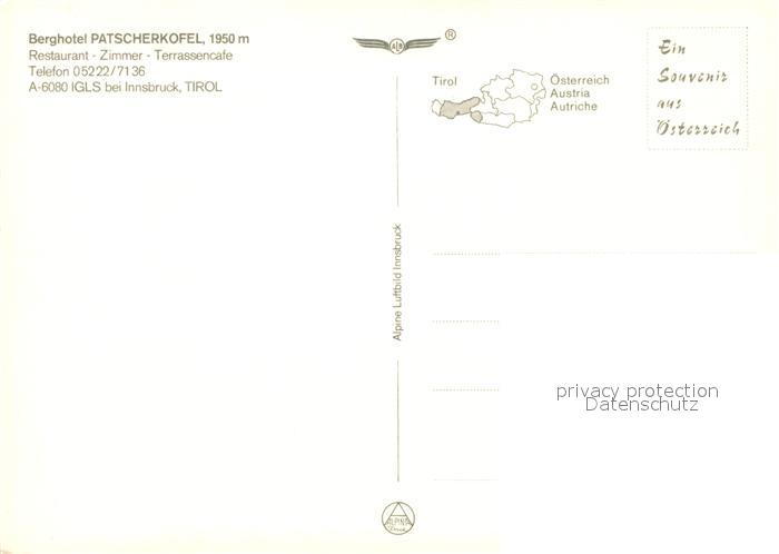 73050731 Igls Tirol Berghotel Patscherkofel postalisch nicht gelaufen Erhaltung siehe scans [KathaD81] KatCode: 11390332070101