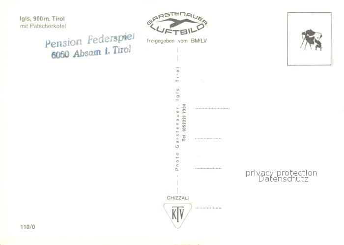 73244167 Igls Tirol Fliegeraufnahme mit Patscherkofel postalisch nicht gelaufen Erhaltung siehe scans [LiesaD40] KatCode: 11390332070101