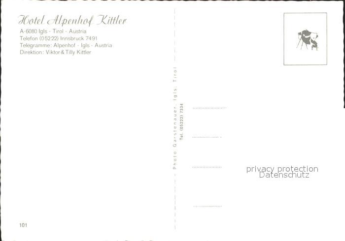 72285316 Igls Tirol Hotel Alpenhof Kittler postalisch nicht gelaufen Erhaltung siehe scans KatCode: 11390332070101
