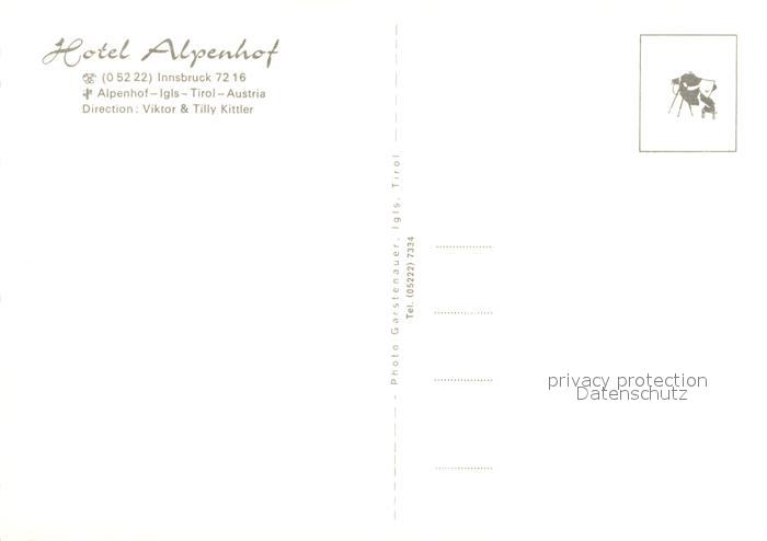 13189441 Igls Tirol Hotel Alpenhof postalisch nicht gelaufen Erhaltung siehe scans [PaolaD17] KatCode: 11390332070101