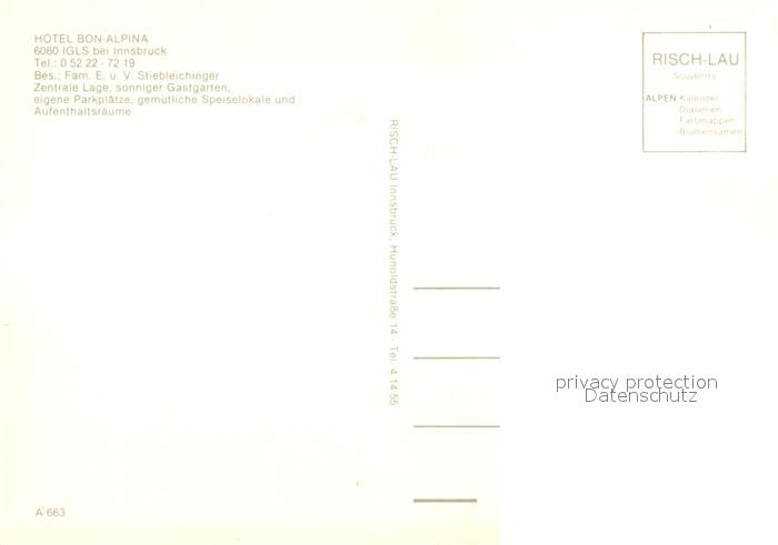 72943806 Igls Tirol Hotel Bon-Alpina postalisch nicht gelaufen Erhaltung siehe scans [PaolaD17] KatCode: 11390332070101