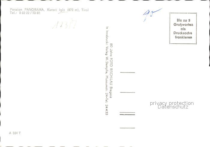 72493157 Igls Tirol Pension Panorama postalisch nicht gelaufen Erhaltung siehe scans KatCode: 11390332070101