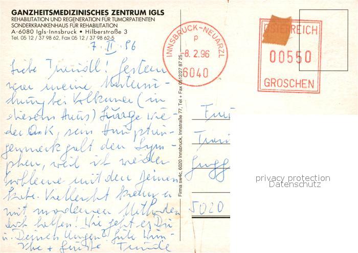 73063378 alte Postkarte Igls Tirol REHA Zentrum postalisch gelaufen Erhaltung siehe scans [KathaD81] KatCode: 11390332070101