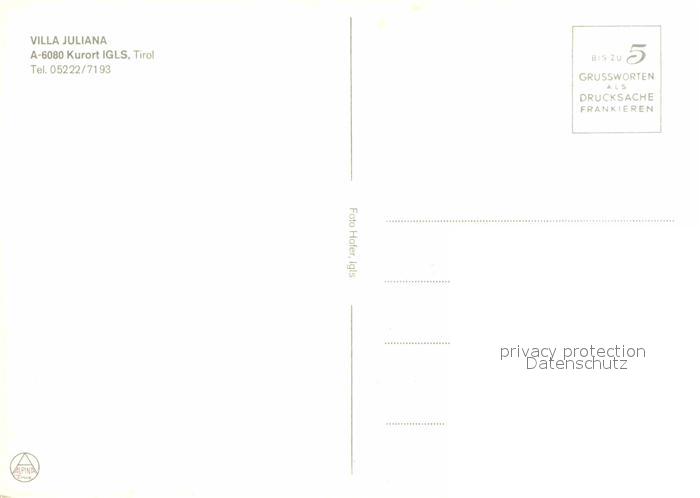 72849493 Igls Tirol Villa Juliana postalisch nicht gelaufen Erhaltung siehe scans [KathaD81] KatCode: 11390332070101