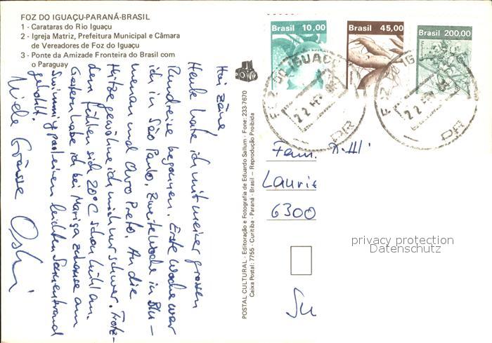 alte Postkarte Iguacu Rio Wasserfall postalisch gelaufen Erhaltung siehe scans