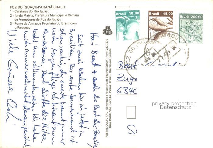 old postcard Iguacu Wasserfall Bruecke postalisch gelaufen Erhaltung siehe scans