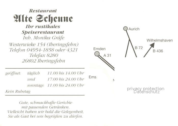 73641847 Iheringsfehn Restaurant Alte Scheune Gastraeume Ziehbruecke postalisch nicht gelaufen Werbekarte (keine Postkarte) Erhaltung siehe scans [WerneD78] KatCode: 11110003457014