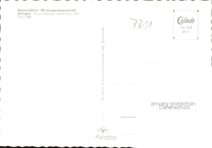41636173 Ihringen Kaiserstuehler Winzergenossenschaft postalisch nicht gelaufen Erhaltung siehe scans KatCode: 11110008315059