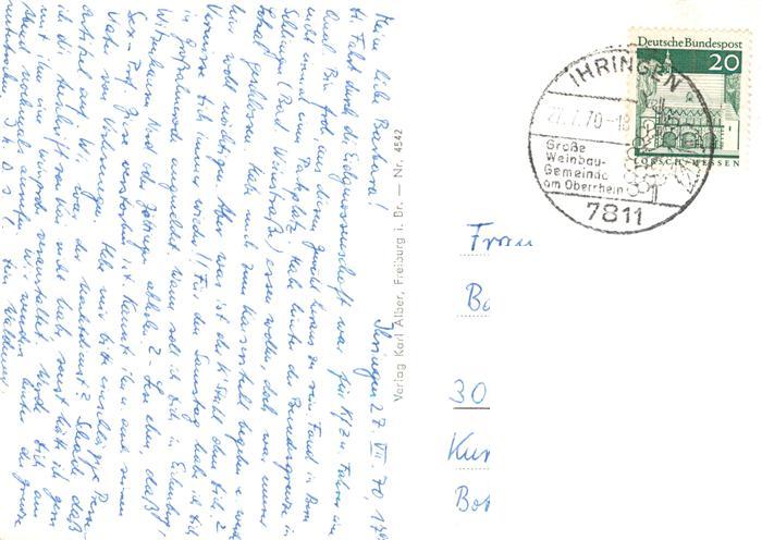 73872183 Ihringen Kaiserstuhl Fliegeraufnahme postalisch gelaufen Erhaltung siehe scans [WerneD78] alte Postkarte Wern Katcode 11110008315059