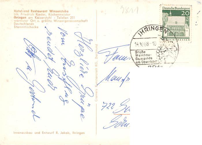 73929084 Ihringen Kaiserstuhl Hotel Restaurant Winzerstube postalisch gelaufen Erhaltung siehe scans [WerneD78] alte Postkarte Wern Katcode 11110008315059